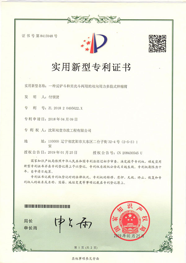 沈陽雙壹機械主要從事挖掘機伸縮臂、加長臂、氣彈簧生產(chǎn)業(yè)務、挖掘機租賃業(yè)務,生產(chǎn)研發(fā)18-55米伸縮臂,200米卷揚挖掘器;公司生產(chǎn)的三節(jié)伸縮臂為雙向用力,可配帶挖掘斗與貝殼斗,超大斗容2.6立方;研發(fā)的氣彈簧可節(jié)油50%,加大斗容80%,提高大臂舉升力!挖掘機伸縮臂適用于地鐵、地下人防、沉井、河道清淤、高層樓基礎、管廊工程等深遠坑作業(yè),產(chǎn)品選材優(yōu)良,設備工藝先進,質(zhì)量穩(wěn)定可靠,雙壹機械以質(zhì)量求生存、以信譽占市場的經(jīng)營原則為全國用戶提供優(yōu)質(zhì)產(chǎn)品。